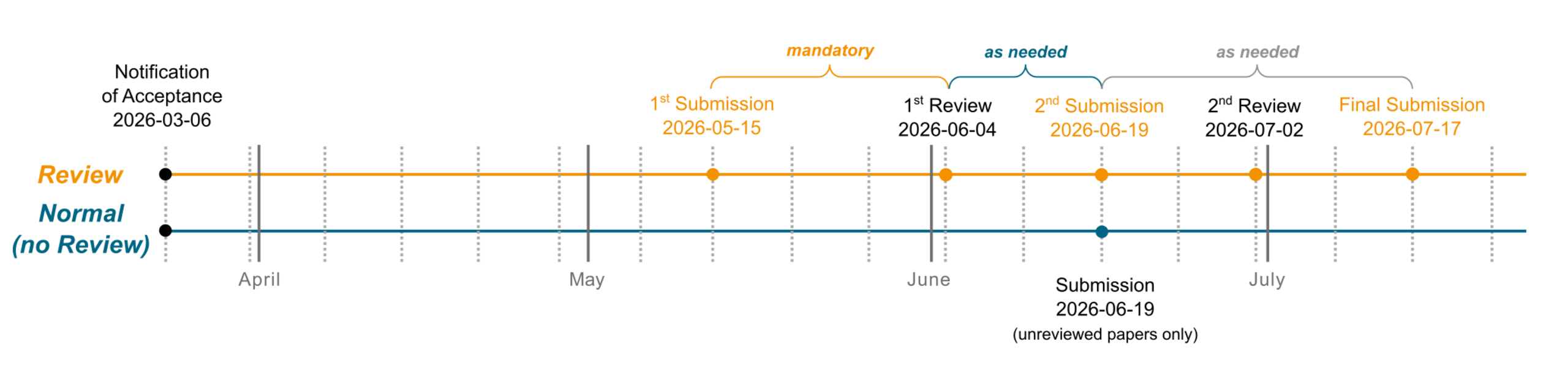 A paper registered for the review process will be independently reviewed by two specialized experts (one from industry, one from academia). This scientific panel consists of the members of the programme committee as well as other experts from industry and academia. After this initial evaluation, the authors have the opportunity, if necessary, to revise their paper with the required changes and submit it again. If the reviewers accept the changes – with the request for further minor corrections if necessary – the paper will be accepted as „Reviewed“ for the conference proceedings (see flow chart for review procedure).
